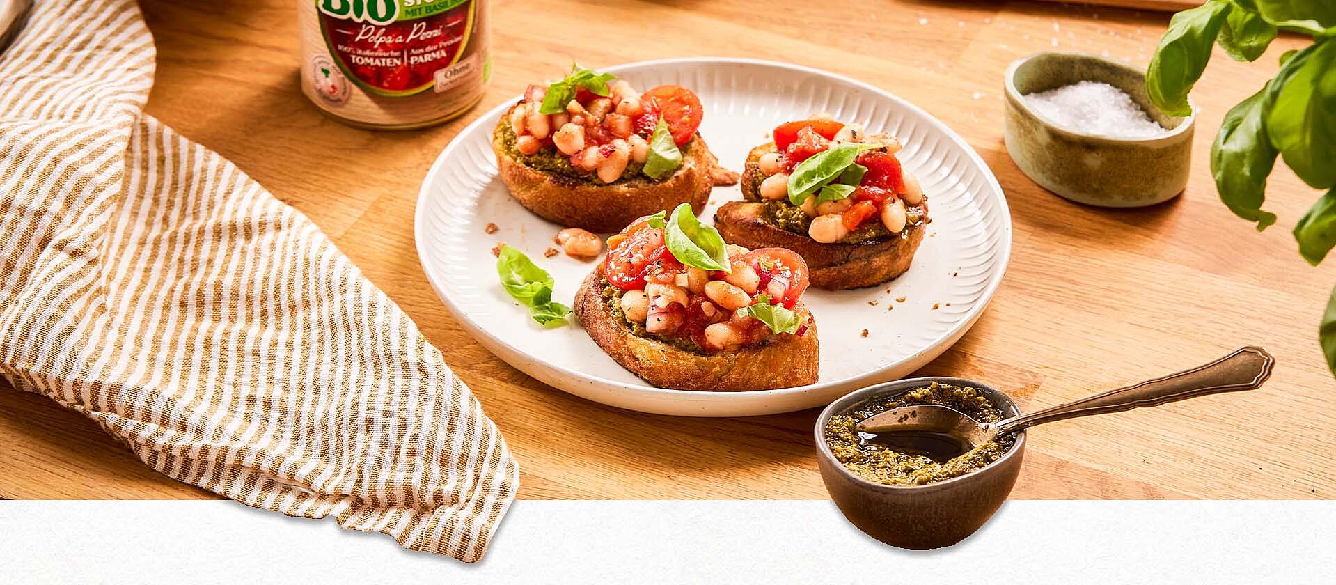 Bohnensalat auf Ciabatta al pesto verde